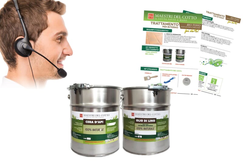 Grazie alla nostra trentennale esperienza nel trattamento del cotto, vi offriamo Prodotti Professionali e Kit Fai da Te, con una particolare attenzione all'uso di Prodotti Naturali 100% Biologici, fondamentali in caso di riscaldamento a pavimento. Troverai soluzioni per trattare al meglio il tuo pavimento in cotto sia da interno che da esterno. Mettiamo inoltre a disposizione, per lavori di importanti metrature, Personale Qualificato per un esclusivo Servizio di Manodopera.